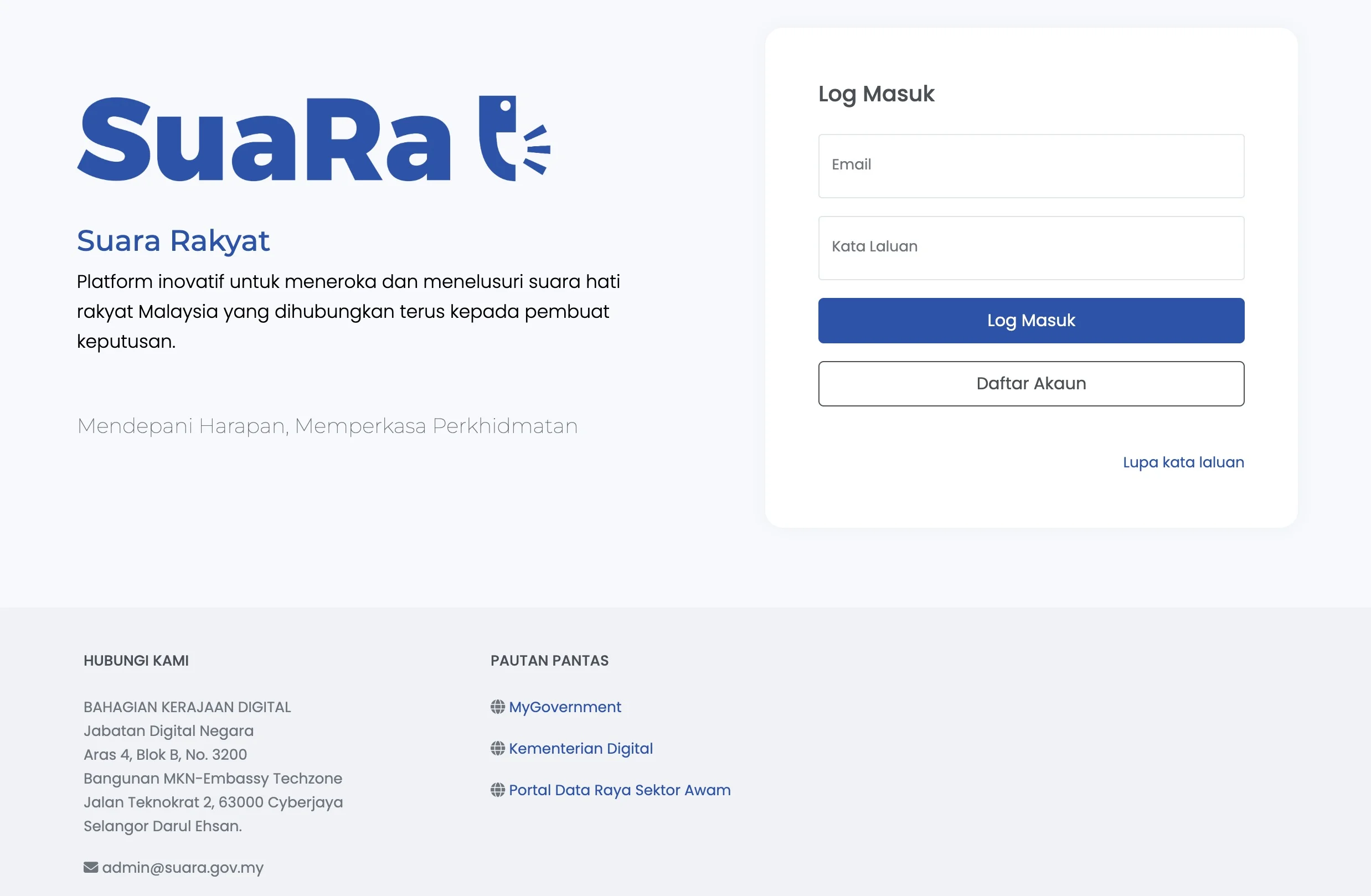 Suara Rakyat (SuaRa) is an intelligent platform developed in-house by JDN to: